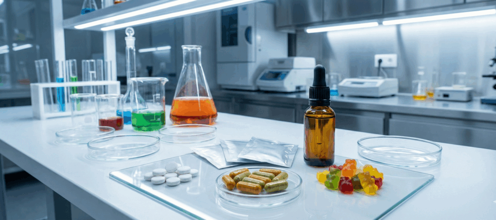 Konsept aşamasından raflara kadar, takviye ürün markanızı en yüksek kalite standartlarında hayata geçirmek için uçtan uca hizmetler sunuyoruz.
